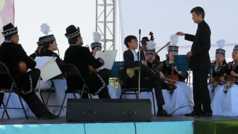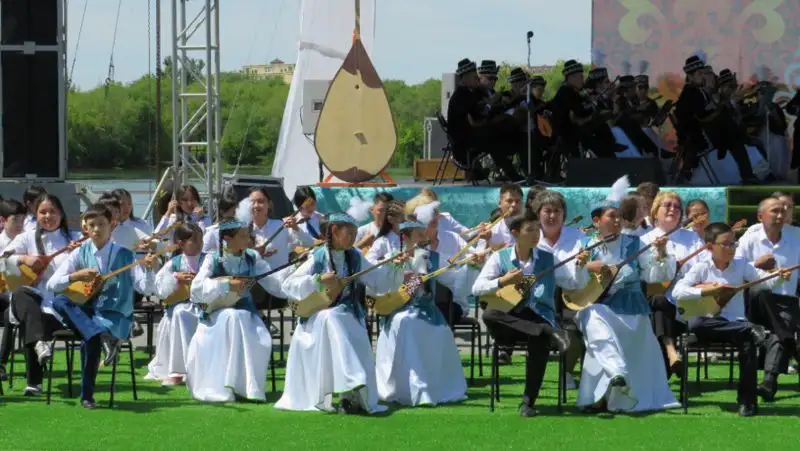 Академический оркестр народных инструментов имени Таттимбета, инструментальные коллективы города, студенты вузов, а также все желающие приняли участие в фестивале «Күмбірле домбра», где сыграли единым оркестром кюи Курмангазы Сагырбайулы «Балбыраун», «Адай».