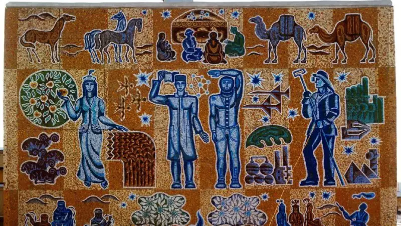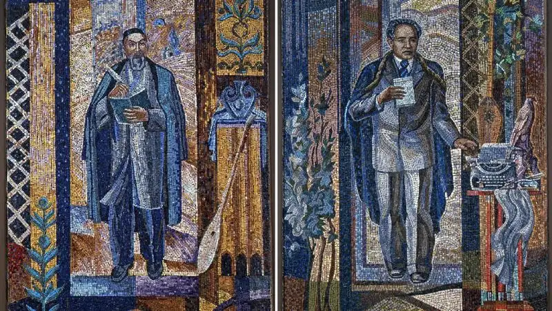 Мозаики на фасаде гостиницы «Алматы» – его работа, мозаики и витраж сохранились в Академии наук, одна из поздних его работ – «Дракон».