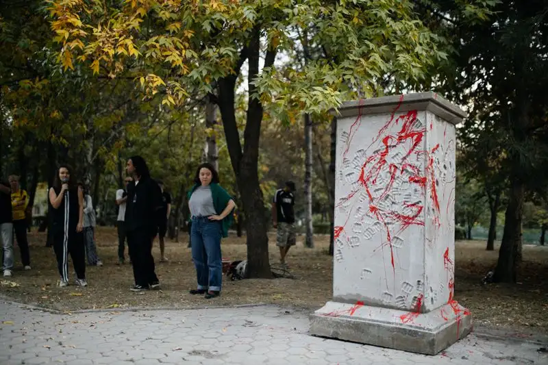 Неподалеку от Центрального музея, где до 9 октября будет проходить выставка "За дверью", зевак встречает постамент без фигуры. На сером бетоне отпечатаны следы 400 ударов – именно столько женщин ежегодно погибает от рукоприкладства, происходящего за закрытыми дверями квартир и домов. По замыслу автора арт-объекта Зои Фальковой, он должен напоминать прогуливающимся мимо людям: подчас даже бетон не способен выдержать той жестокости, что проявляет один человек по отношению к другому.