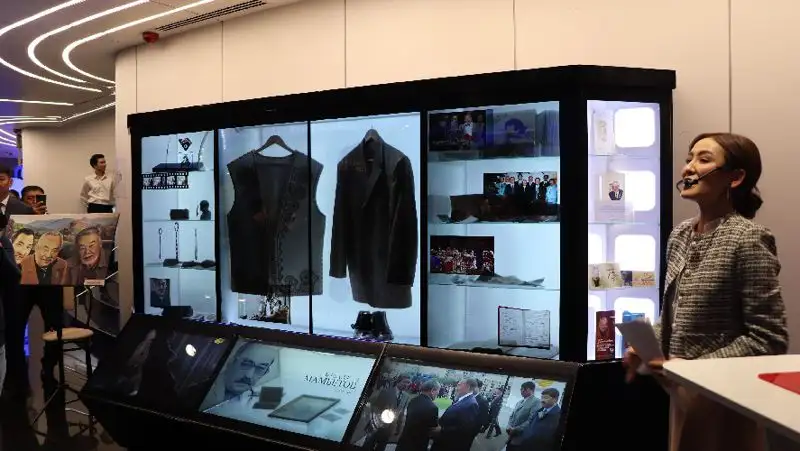 Самая первая версия появилась в 2018 году. После этого продолжили разрабатывать еще больше версий. С помощью эксперимента добивались эффекта голограммы. Создание этой голограммы заняло больше месяца. Все экспонаты передали жена и дети режиссера. Около 30 экспонатов здесь, если посчитать. Самые интересные из экспонатов – костюмы, жакетка, которые он носил постоянно, и его блокноты, сценарии спектаклей.Бауржан Бактыгереев