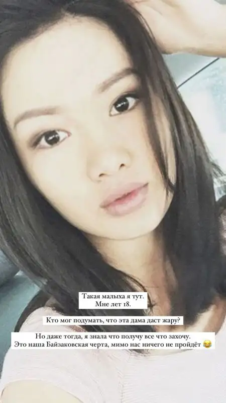 Известный казахстанский блогер Айжан Байзакова 13 декабря 2022 года в Instagram-Stories опубликовала архивное фото, сообщает Zakon.kz.