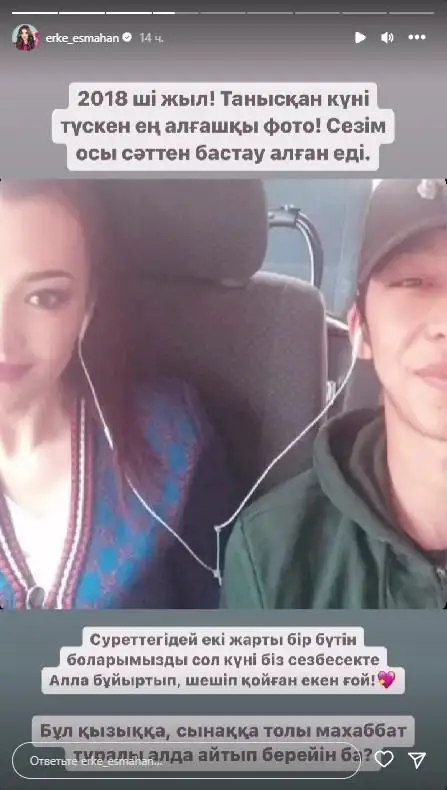 Есмахан в Instagram-Stories показала первое фото, сделанное в 2018 году – в день знакомства с Raim.