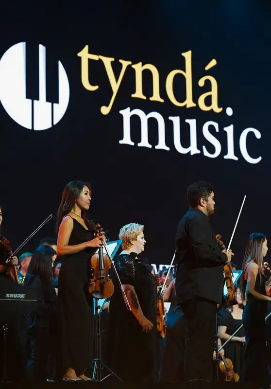 Как рассказывает руководитель проекта Айдос Мендалиев, Tynda.music стал первым симфоническим оркестром, собравшим арену Дворца спорта Baluan Sholaq в сентябре 2022 года.