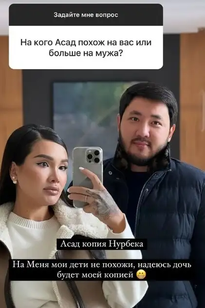Айжан Байзакова ответила на неожиданный вопрос подписчика в Instagram. Ее спросили, на кого похож новорожденный сын актрисы. В ответ она заявила, что хочет родить дочь, и она хотела бы, чтобы третий ребенок был похож на нее.