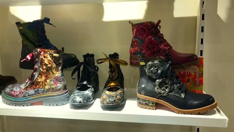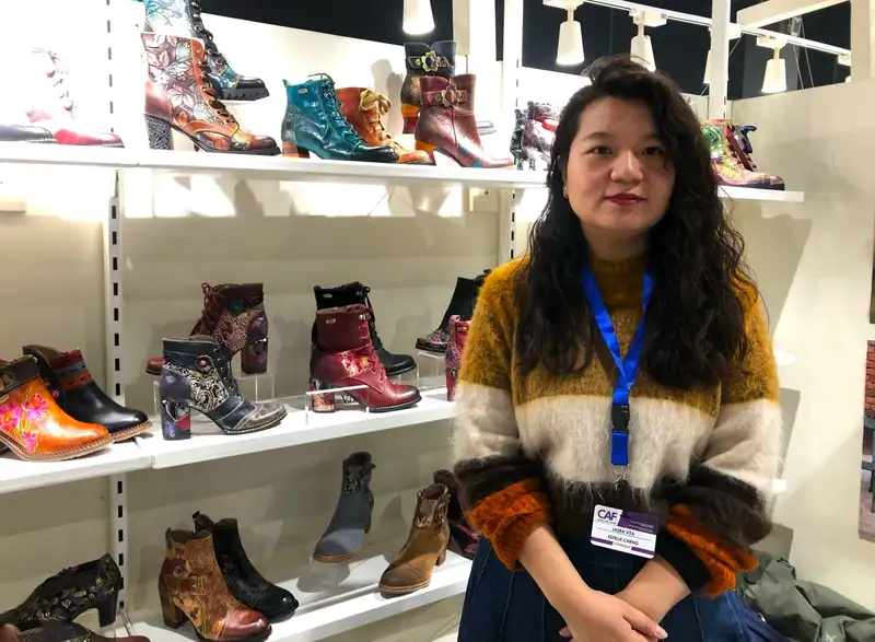 Особое внимание байеров привлекла яркая женская обувь с цветочными элементами. Эстелла Ченг рассказала, что компанию основала ее мама.