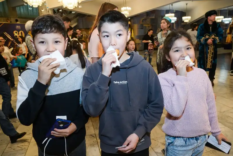 В конце, под космическую музыку Великой степи, в фойе театра по традиции угощали зрителей баурсаками.