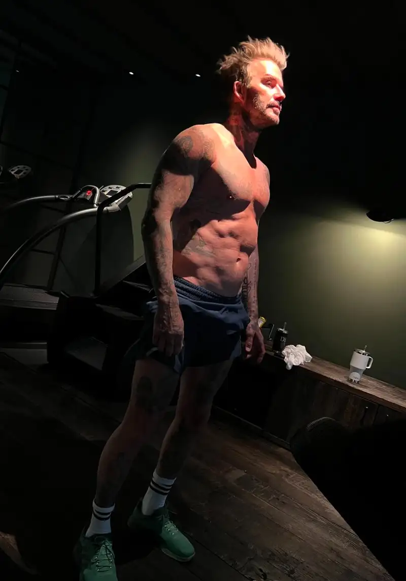Днями ранее Дэвид продемонстрировал свое атлетическое телосложение, упомянув в качестве фотографа свою и без того знаменитую супругу.