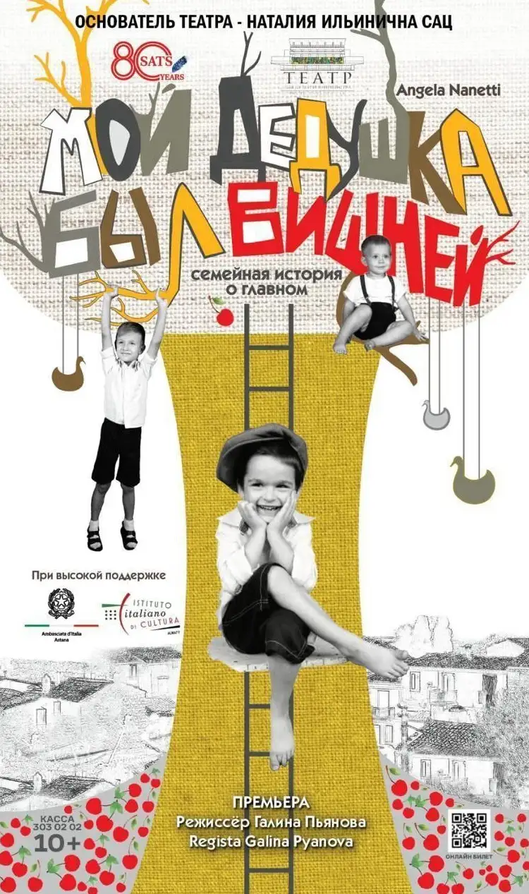 Зрителям показали постановку известного казахстанского режиссера, обладателя российской национальной театральной премии "Золотая маска" Галины Пьяновой по книге современной итальянской писательницы Анджелы Нанетти "Мой дедушка был вишней". Это стало настоящим событием для всех ценителей театрального искусства в Алматы.