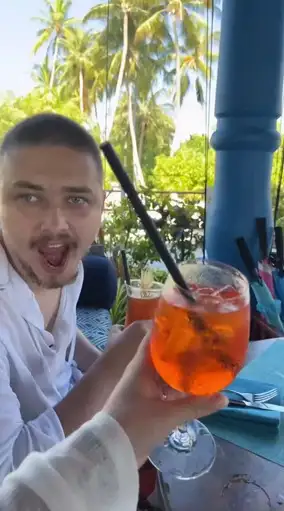 На одном из роликов Мелисса, вспоминая свой профессиональный опыт, танцует на камеру в розовом купальнике на фоне тропических пейзажей. На других кадрах пара угощается прохладительными напитками.