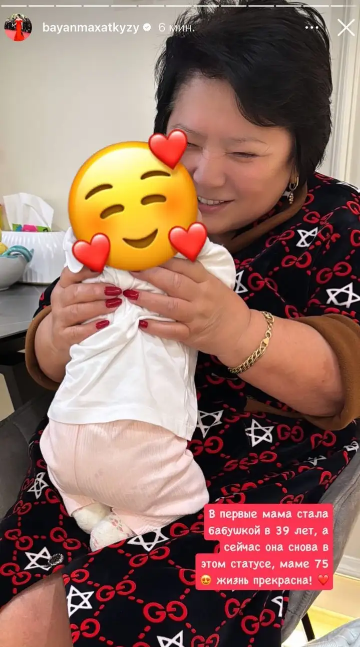 В следующем Stories Баян Алагузова отметила, что впервые ее мама стала бабушкой в 39 лет.