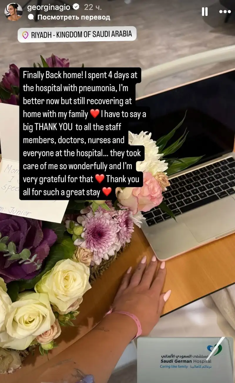 Невеста нападающего клуба "Аль-Наср" Криштиану Роналду Джорджина Родригес рассказала о своей госпитализации в Эр-Рияде (столица Саудовской Аравии), сообщает Zakon.kz.