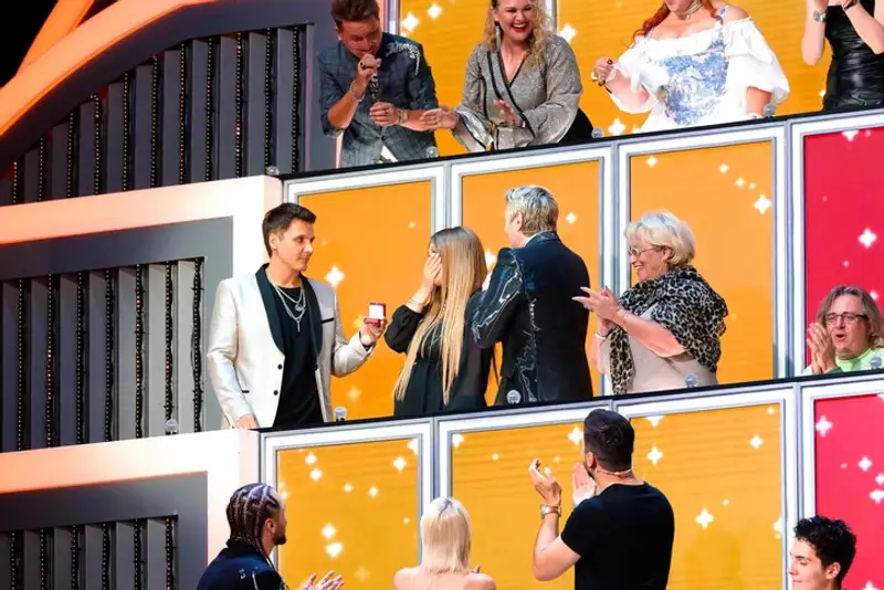Композитор Игорь Бабаев сделал предложение руки и сердца своей избраннице Оксане Почепе, более известной как Акула. Бабаев принес с собой кольцо и попросил руки любимой.