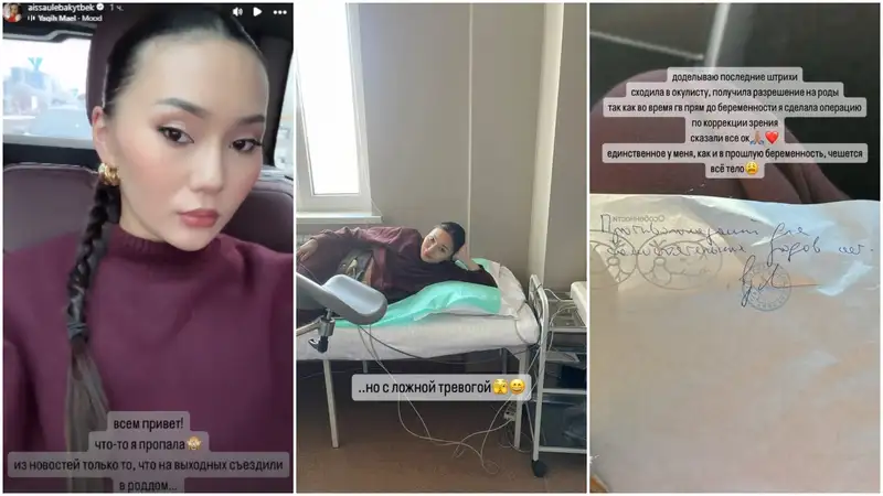 "Всем привет! Что-то я пропала. Из новостей только то, что на выходных съездили в роддом... но с ложной тревогой. Доделываю последние штрихи: сходила к окулисту, получила разрешение на роды, так как во время ГВ прям до беременности я сделала операцию по коррекции зрения. Сказали: "Все ок". Единственное – у меня, как и в прошлую беременность, чешется все тело", – написала Айсауле в Stories.