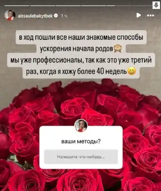 Бакытбек также запустила опросник, котором попросила фолловеров поделиться методами ускорения родов.