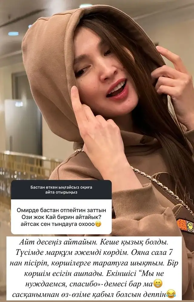 "Я тоже "иногда" так думаю. Кстати, кто его жена? Отметьте, пожалуйста", – иронично отреагировала Жулдыз.