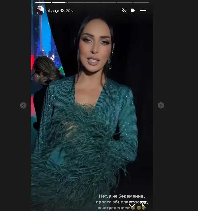 "Нет, я не беременна. Просто объелась перед выступлением", – прокомментировала фото в своем Instagram певица.