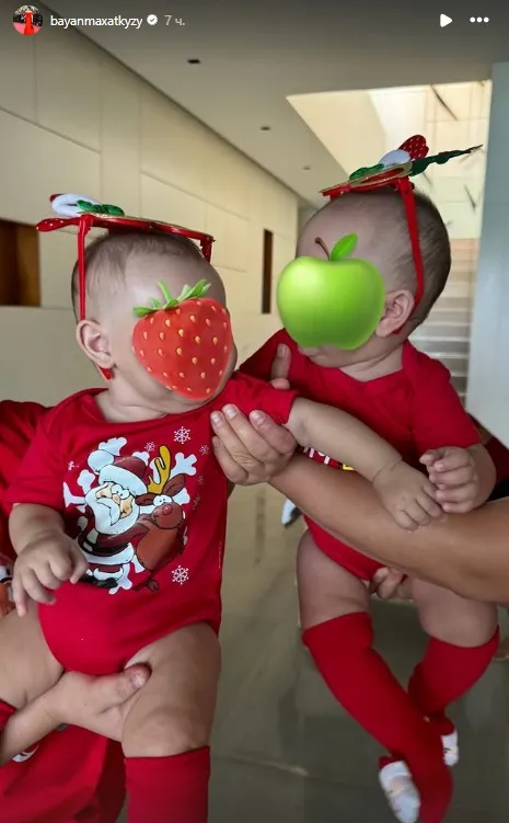 31 декабря 2024 года в Instagram-Stories многодетная мама опубликовала фото Алисы и Алмы, одетых одинаково по-новогоднему.