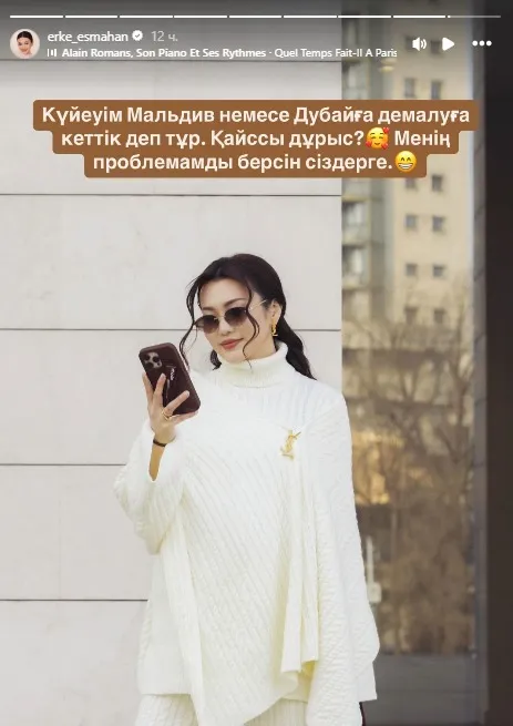 "Мой муж предложил улететь на отдых на Мальдивы или в Дубай. Что выбрать? Пусть и у вас будут такие же проблемы, как у меня", – написала Ерке.