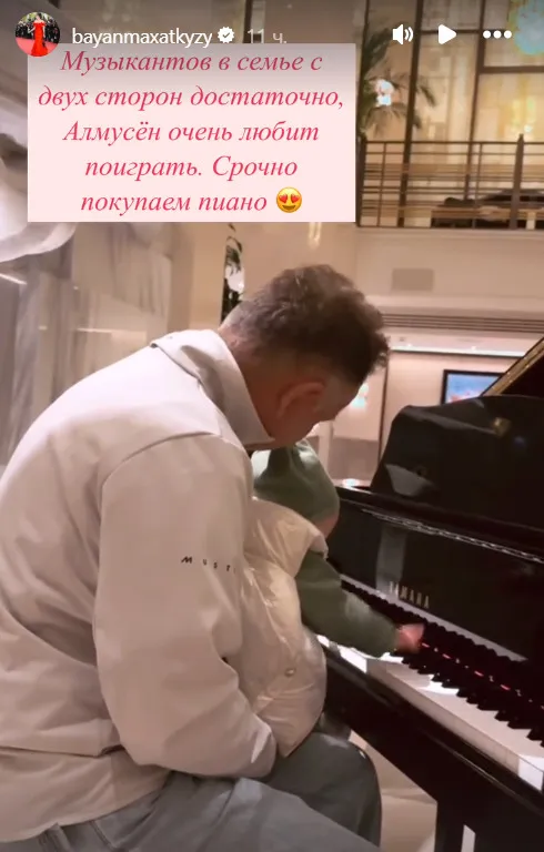 "Музыкантов в семье с двух сторон достаточно, Алмусен очень любит поиграть. Срочно покупаем пианино", – подписала публикацию продюсер.