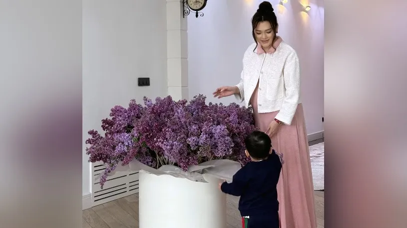 Ерке Есмахан прилетело от хейтеров за видео с сыном и огромным букетом сирени