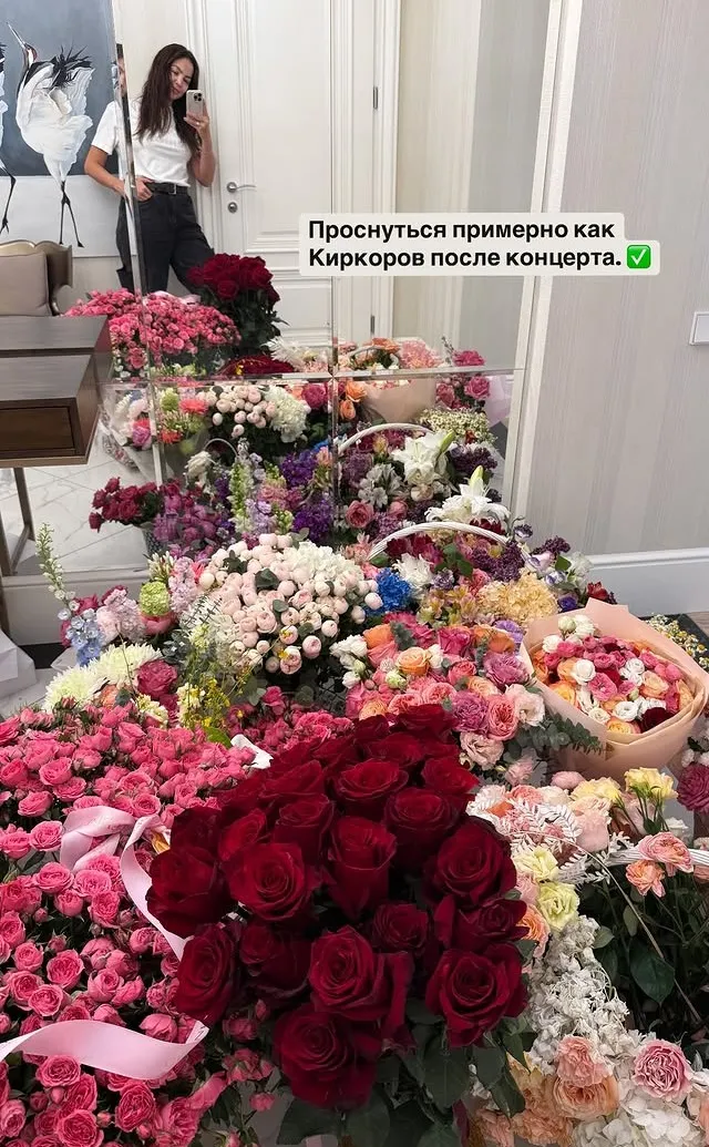 Фотография, где именинница позирует на фоне шикарных цветов, появилась в Instagram-Stories накануне, 7 мая 2025 года.