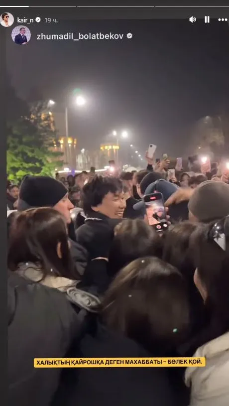 Это произошло после того, как Нуртас покинул одно из мероприятий. Несколько десятков человек окружили певца, не давая ему возможности пройти к автомобилю.