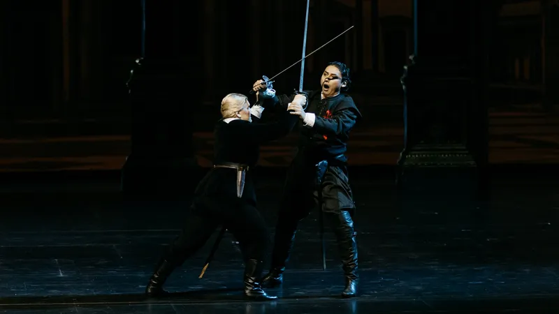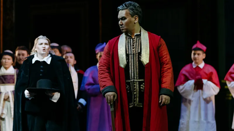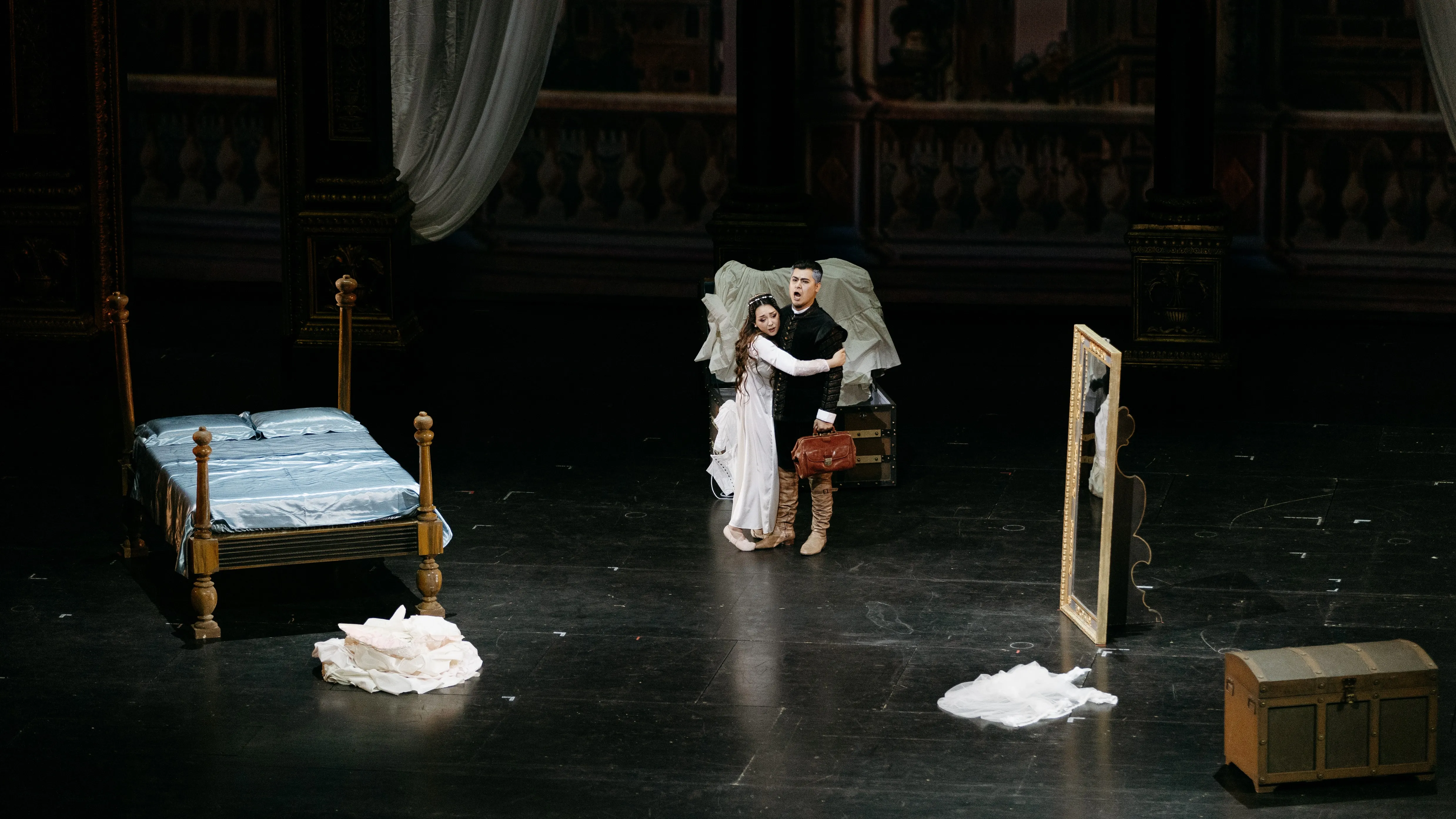 Академия выстраивает прочную творческую вертикаль, в которой проявляется преемственность поколений. Так, в роли Капеллио оба дня выступил Шыңғыс Расылхан (бас) – выпускник самого первого набора Академии в 2023 году. Его зрелая вокальная манера и сценическое мастерство наглядно продемонстрировали, к каким результатам приводит системная работа в Академии. В этот раз его партнером на сцене стал представитель второго выпуска – Сұлтан Бақытжан (баритон) (партия Лоренцо), который уверенно подтвердил высокий уровень подготовки молодых певцов нового поколения.