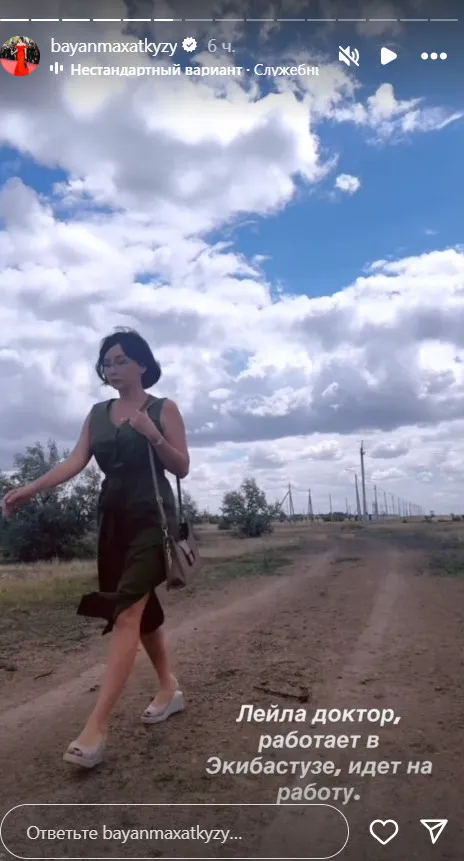 "Лейла – доктор. Работает в Экибастузе, идет на работу", – подписала актриса кадр.