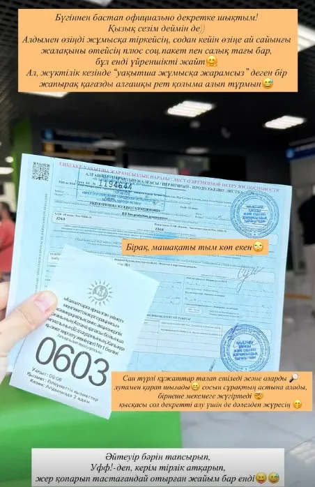 "С сегодняшнего дня официально вышла в декрет! Странное чувство... Впервые получаю листок бумаги "о временной нетрудоспособности".