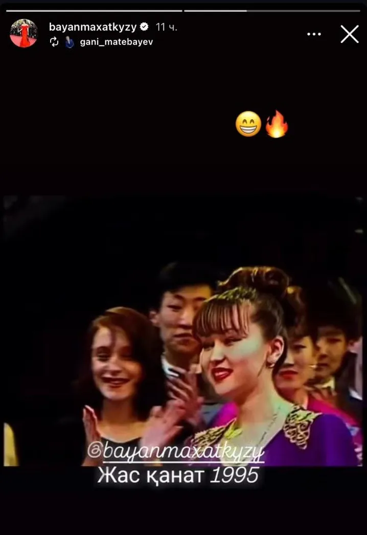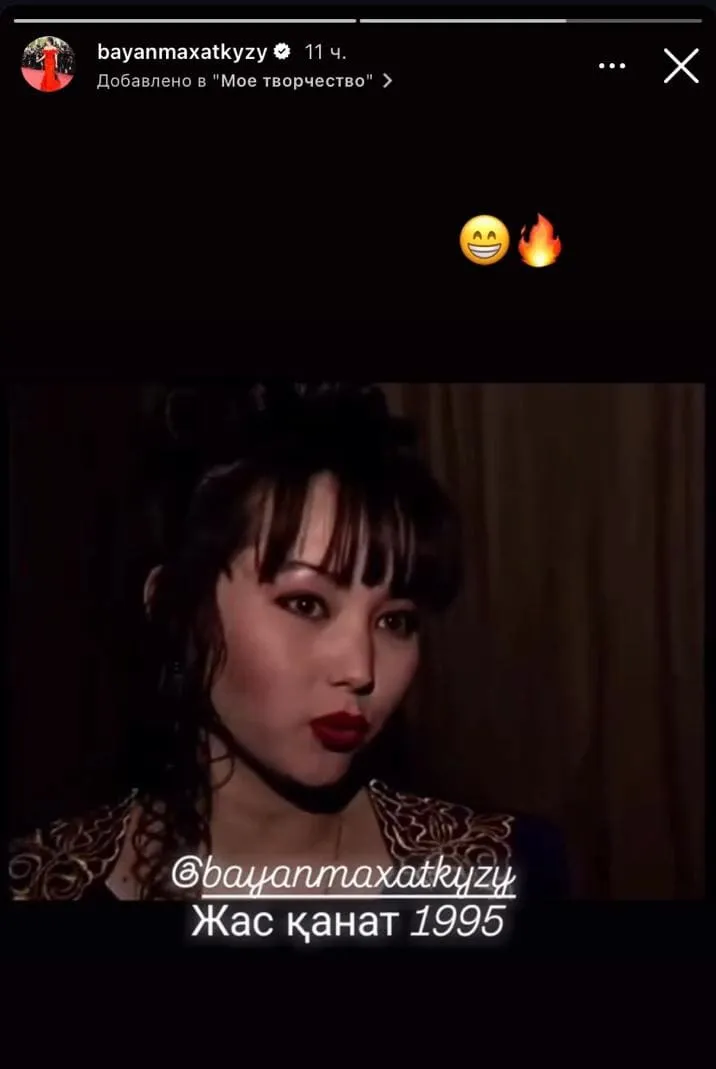 Казахстанская продюсер и актриса Баян Aлагузова опубликовала в Instagram редкие архивные кадры 1995 года, где она получает третье место на музыкальном конкурсе исполнителей "Жас Канат", сообщает Zakon.kz.
