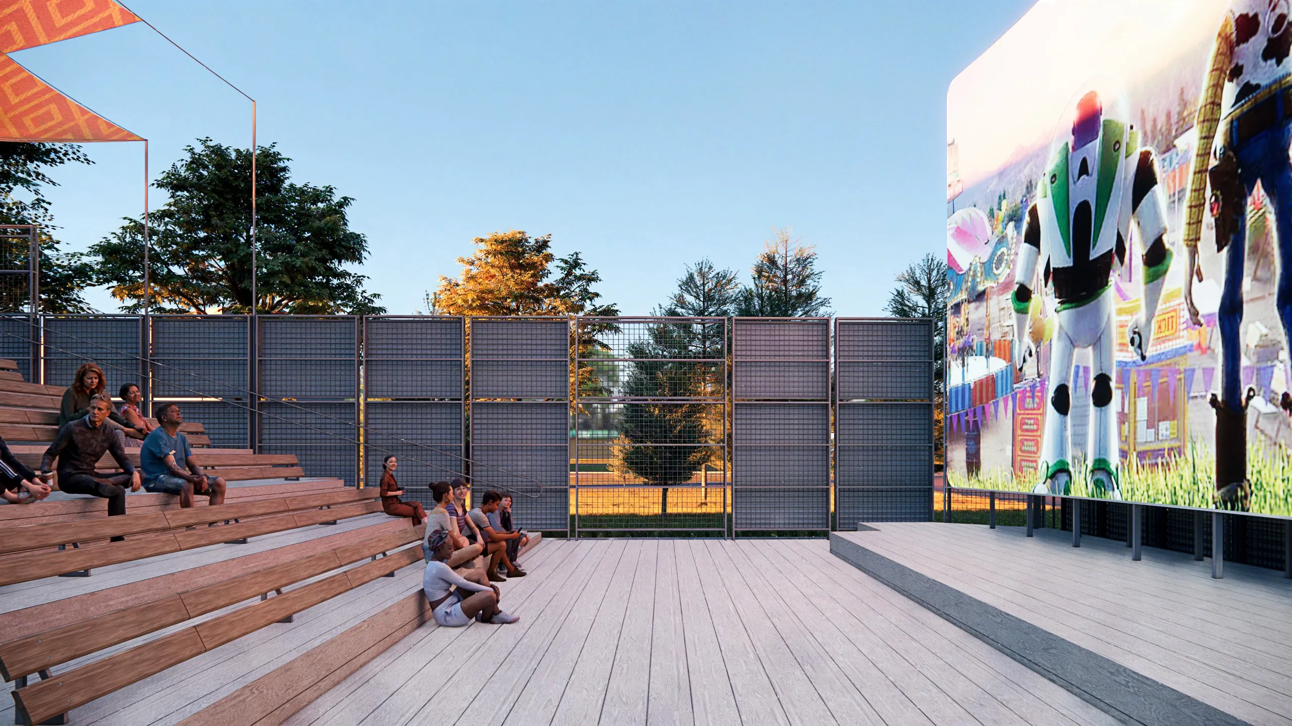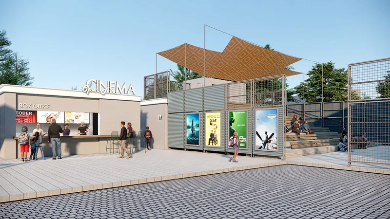 Первый современный кинотеатр под открытым небом рассчитан на 180 человек, где будет установлено самое современное кинооборудование: звуковая система JBL, моторизированный экран размером более 10 метров в ширину. Для удобства зрителей будет доступна точка питания, где зрители смогут подкрепиться до или после сеанса.