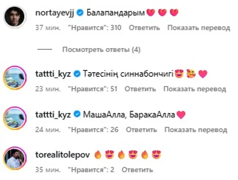 Одними из первых на видео отреагировал муж Дархан Нортаев, а также сестренка Дина и отец Тореали.