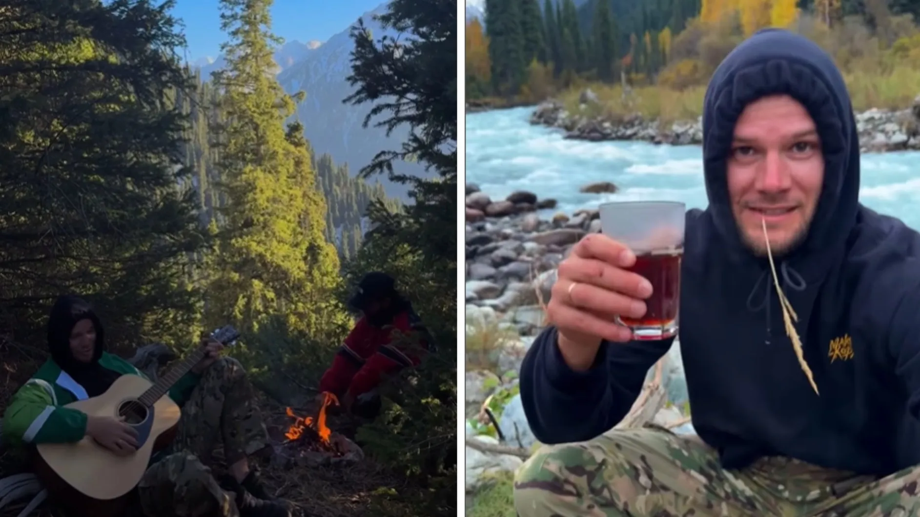 Так, 9 октября 2025 года Корж показал кадры с похода в горы. Артист с гитарой среди величественных елей исполняет песню под названием "Крутой чел".