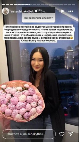 "Этот вопрос задается уже второй опросник подряд, и смею предположить, что от новых подписчиков, так как старые мои знают, что отсутствие моего мужа в моих сторис – это обыденность и норма, а не "звоночек". Я не показываю своего мужа и детей на своей странице".