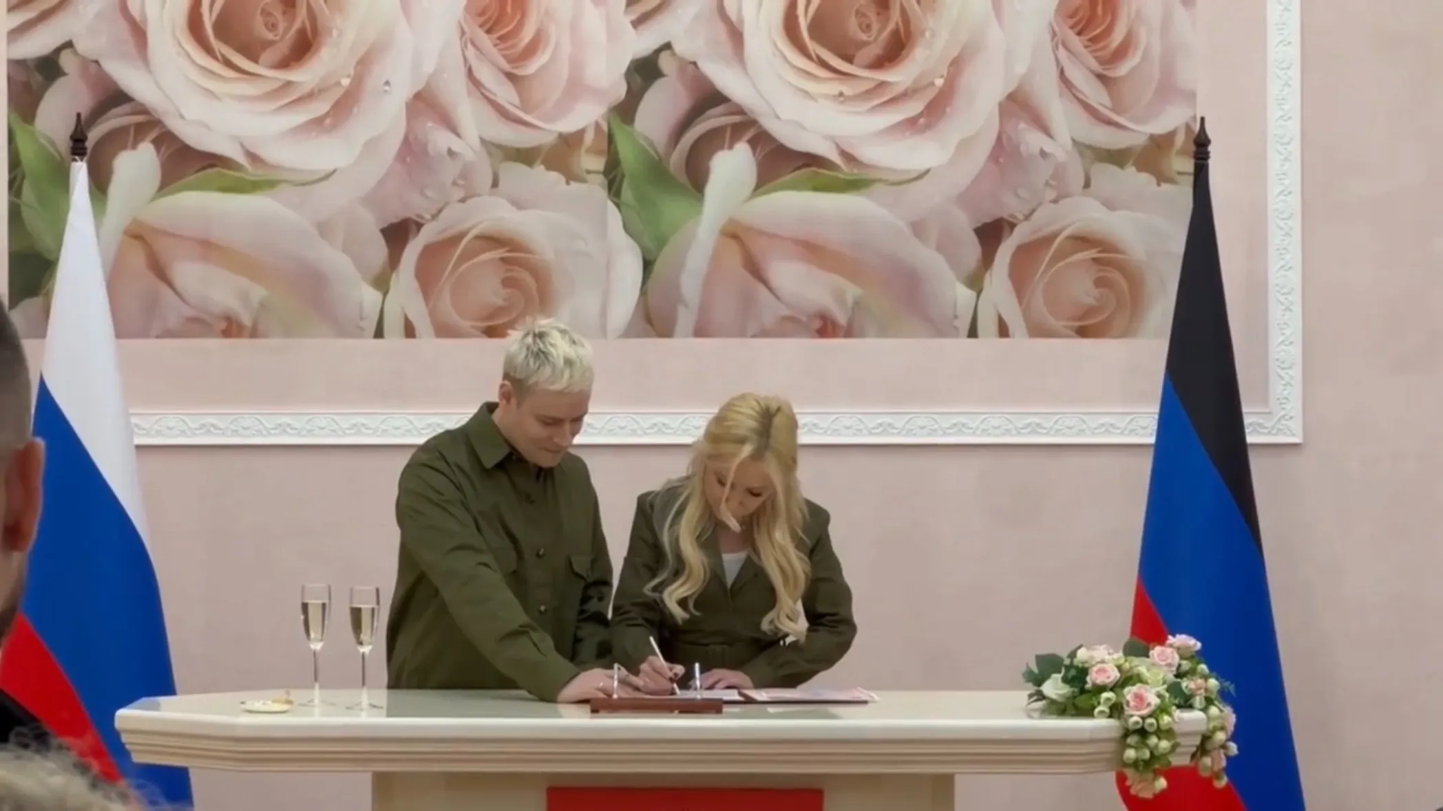 Судя по кадрам с церемонии, молодожены отказались от традиционных свадебных нарядов: вместо платья и костюма черные брюки и рубашки цвета хаки. Торжество прошло в узком кругу. Среди немногочисленных гостей был глава ДНР Денис Пушилин – он вручил невесте большой букет белых роз.