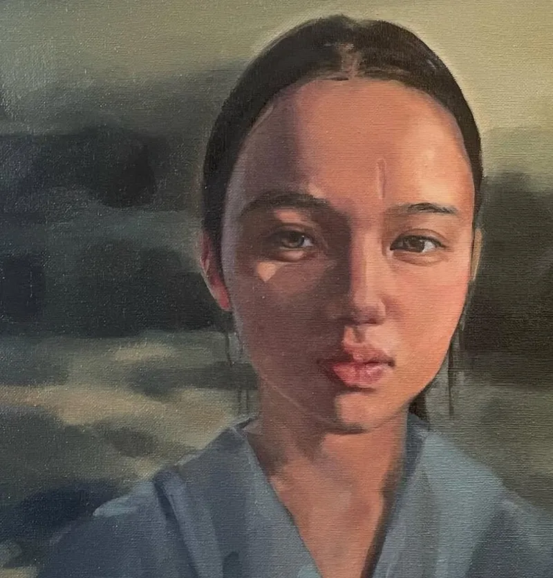 Автор рисует не только самого Димаша. На выставке был представлен атмосферный портрет Раушан Кудайберген.
