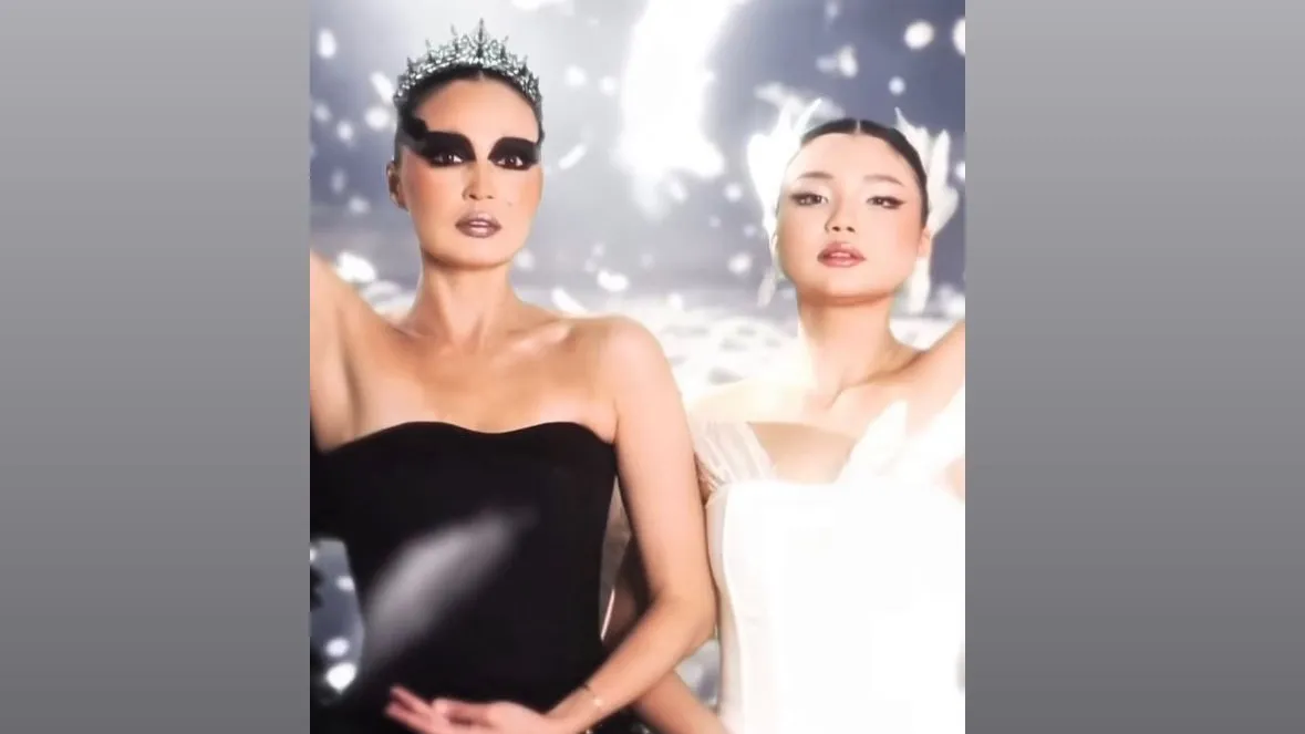 Мать и дочь примерили контрастные амплуа Одетты и Одиллии. Атмосферу постановки подчеркнули изысканные наряды и драматичный сценический макияж, в точности передающий стилистику знаменитой киноленты.