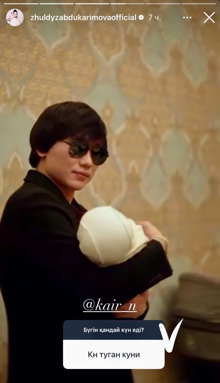 Таким образом актриса и блогер Абдукаримова подхватила семейную эстафету поздравлений. Сначала она томила своих подписчиков вопросом о значимости текущего дня, а затем опубликовала правильный ответ. Им стал – день рождения Кайрата Нуртаса.