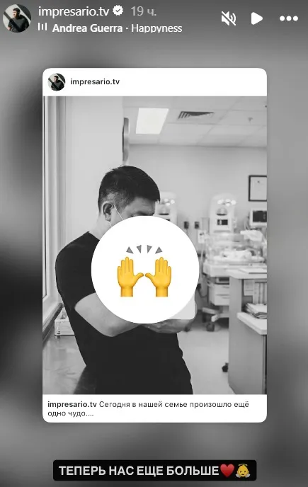 1 апреля 2026 года – в День смеха – импресарио заявил, что их семья стала еще больше, опубликовав фото с младенцем.