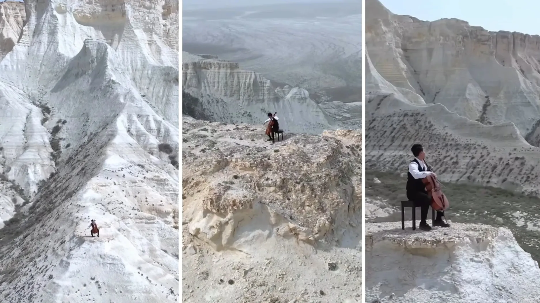 Известный виолончелист Багжан Октябрь вдохнул жизнь в казахскую классику среди меловых скал
