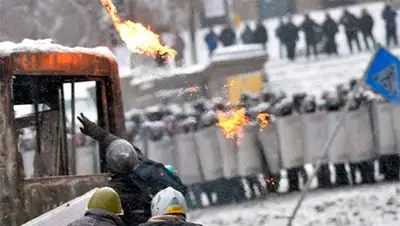 Столкновения на улице Грушевского в центре Киева начались 19 января после «народного веча», в котором приняли участие до 100 тысяч человек. Часть демонстрантов попыталась прорвать милицейские кордоны, защищавшие правительственный квартал. 22 января силовики разобрали одну из баррикад, возведенных активистами, и пригнали на улицу БТР. В настоящий момент митингующие жгут автомобильные покрышки у места, где расположились милиционеры, а также возводят вторую линию баррикад возле гостиницы «Днепр».