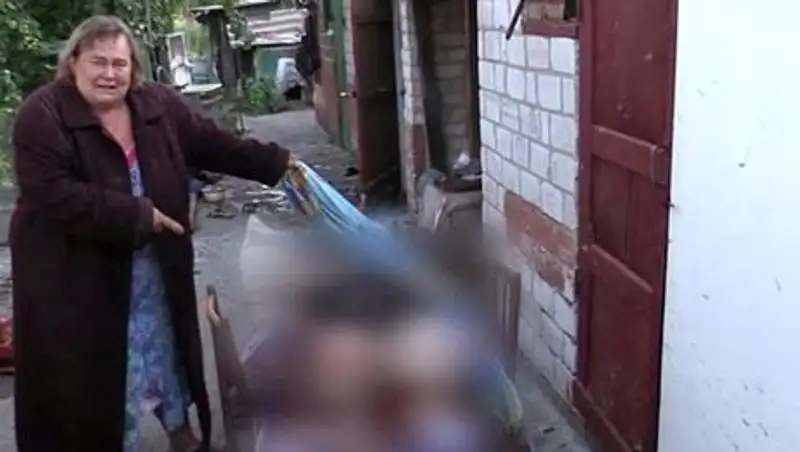 Елена Данченко показывает журналистам тело убитой дочери. В ее голосе гнев, который, как известно, одна из стадий принятия неизбежного. Позже придет осознание того, что дочери больше нет. "Она только повернулась, и снаряд влетел, и все — не стало дочки", — плачет Елена Данченко, мать погибшей. Пятилетнего ребенка Надежды Данченко доставили в госпиталь ночью с многочисленными осколочными ранениями.