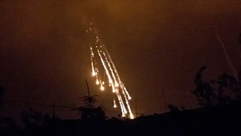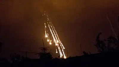 Украинские военные стреляют фосфорными зажигательными снарядами по поселку Семеновка 11 июня 2014 года