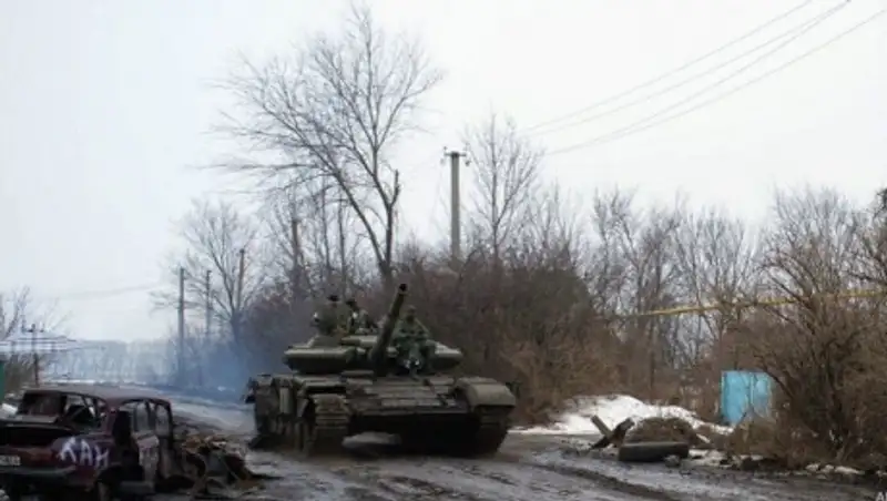 Украинское телевидение сообщило о гибели отца и ребенка в результате обстрела сепаратистами города Дебальцево с северо-востоку от Донецка.