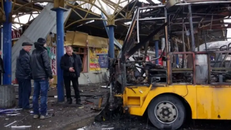 В среду утром несколько снарядов попали в автостанцию в центре Донецка. Были уничтожены два автобуса, повреждено здание автостанции и расположенный поблизости магазин. Сообщается о шести погибших, восьми пострадавших. Детей среди них нет.