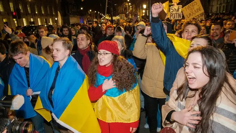 • После начала вооруженного противостояния в Украине по всему миру прошли многотысячные акции протестов.