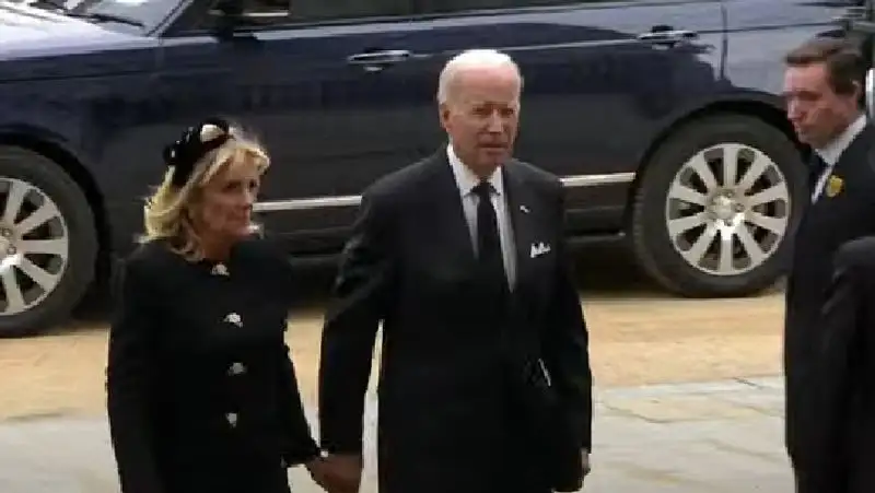 Президент Джо Байден вместе со своей женой Джилл Байден прибыл в Вестминстерское аббатство.