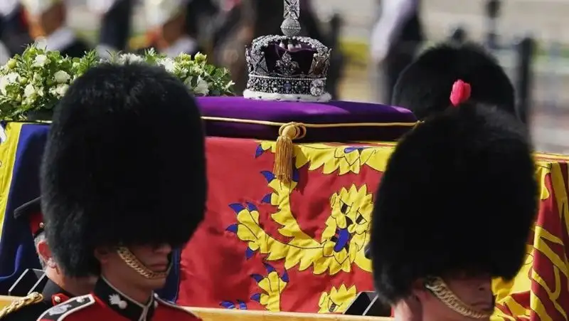 Перед погребением с гроба королевы сняли корону, державу и скипетр. Декан Виндзорского замка преподобный Дэви Коннер переложил символы монархии на алтарь часовни.