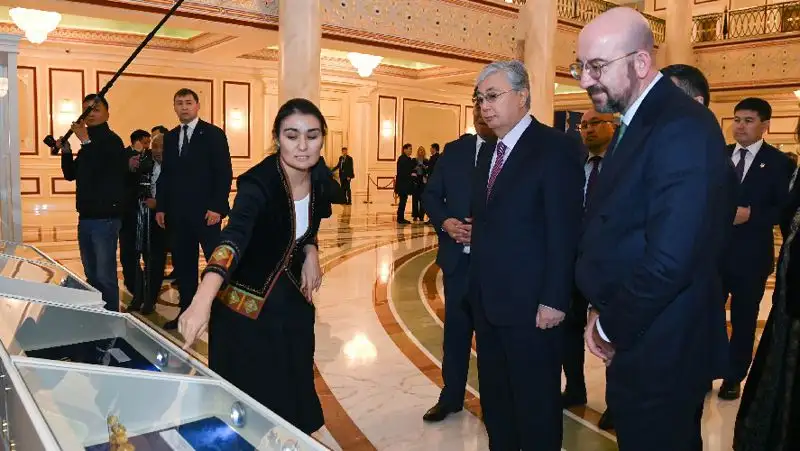 Как пишет Акорда, Токаев, президент Кыргызстана Садыр Жапаров и президент Европейского совета Шарль Мишель приняли участие в официальной церемонии открытия Дней культуры Кыргызстана в Казахстане.