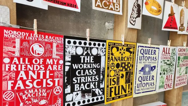 Наряду с кофе и выпечкой посетители могли побаловать себя "радикальными книгами, произведениями искусства, наклейками, украшениями, одеждой и сумками".